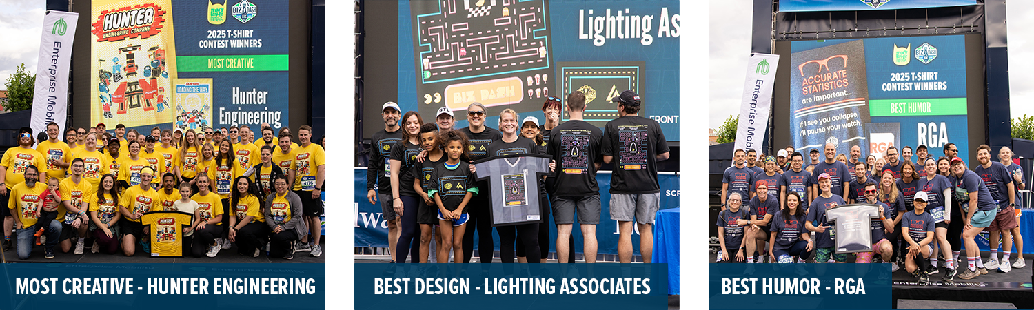 The three winning teams will be announced on the Biz Dash Facebook page on Wednesday, May 6 by 1pm. The winning teams will also be recognized during the pre-race ceremony on Thursday, May 7. Each team will be called up on the Enterprise Stage to accept their award so please be sure to arrive to the Spectrum Team Village by 6pm.