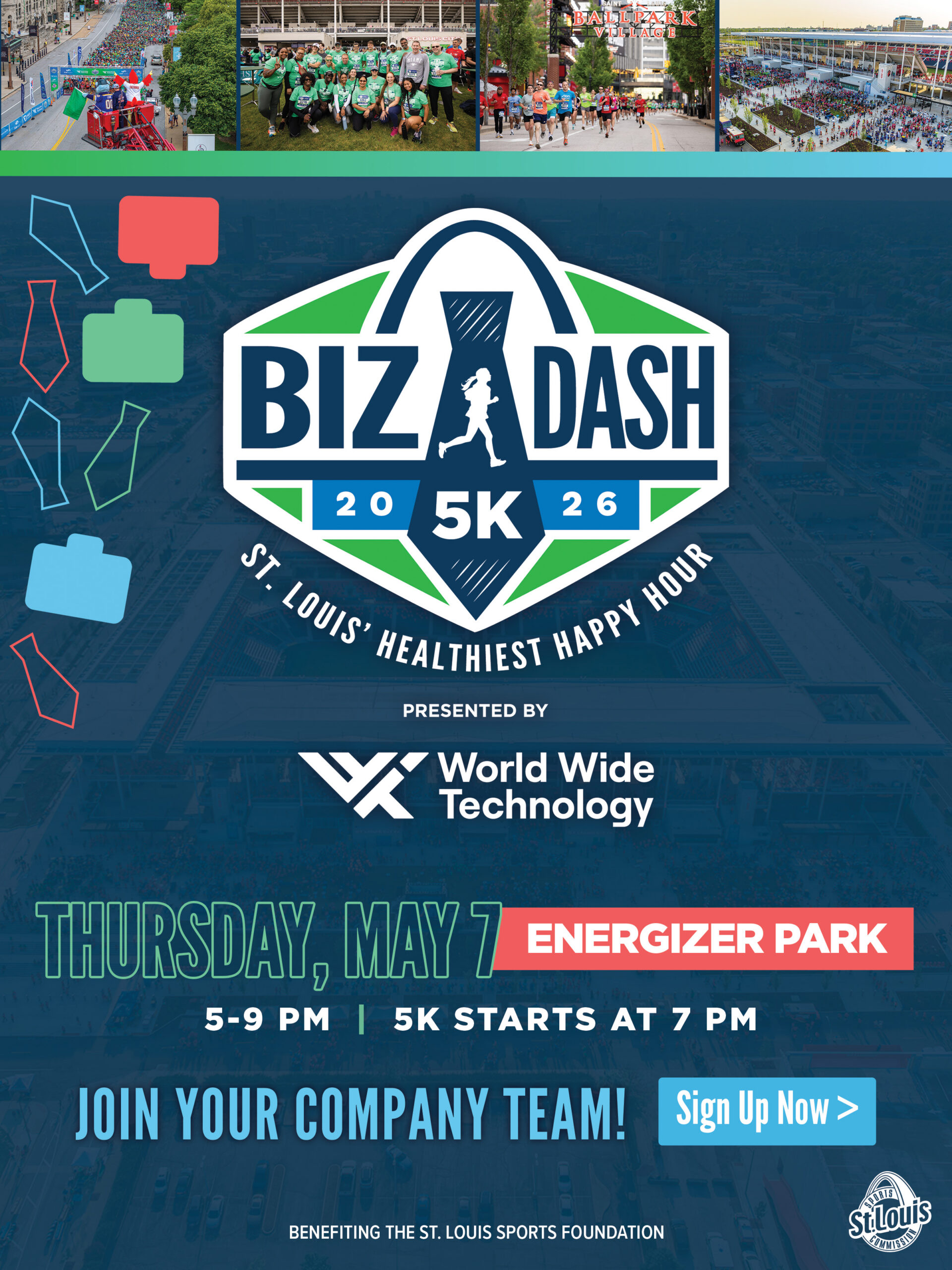 Content: [Company Name] will be participating in the 2026 Biz Dash 5K! We invite all levels of runners and walkers to join our team with code (insert code). The Biz Dash is Thursday, May 7 at Energizer Park from 5-9pm (5K starts at 7pm). Make sure you submit the Biz Dash for wellness points too! Sign up at stlbizdash.com.
